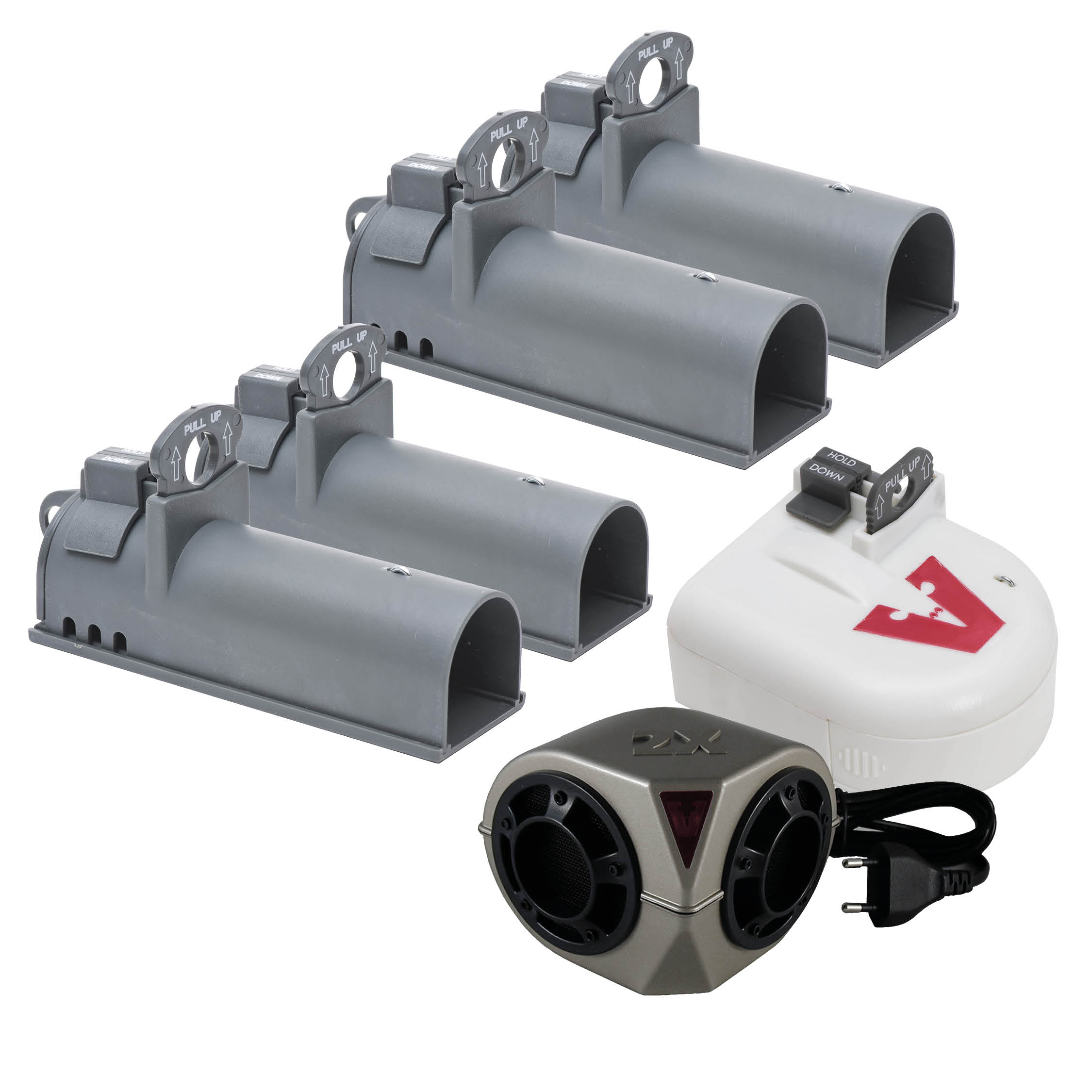 Clean-Kill musfällan är en effektiv giljotinfälla med sluten design, vilket innebär att du slipper se eller hantera djuren. Paketet innehåller även ett 2-pack Kill-Vault-fällor samt en mus- och råttskrämma som håller skadedjuren borta med högfrekvent ultraljud – helt utan gifter.